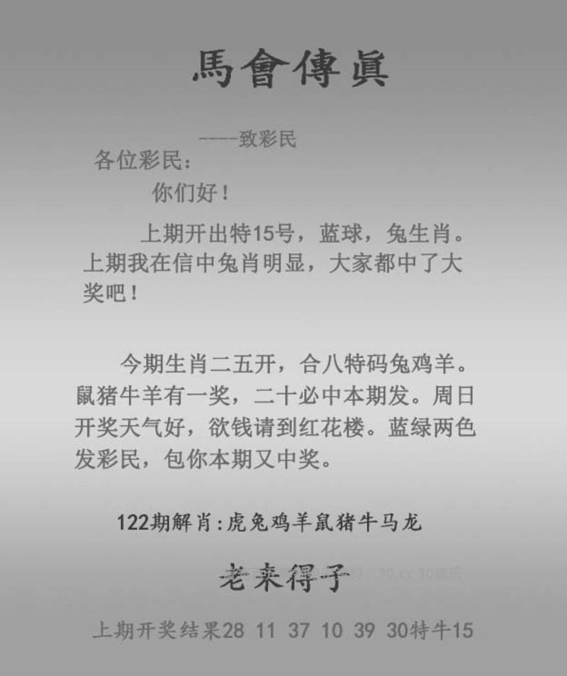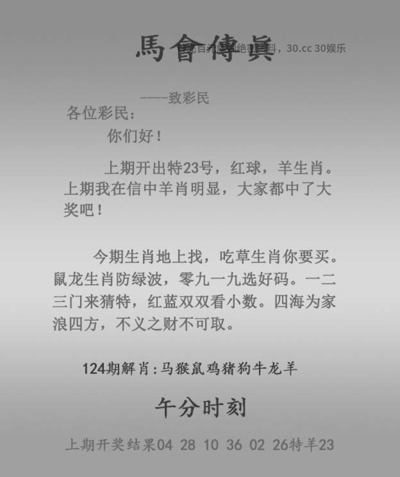 125期马会传真: 今期特码看是双,九尾之数开两边 红粉知己二五来,美女水土火数中 变幻莫测显神功,一举两得猪中计 看七合六一三连,双喜临门一大篇 狐假虎威 解:今期特码看是双,解双肖虎鼠狗猴马龙,一举两得猪中计,解凶丑生肖鼠牛虎猴狗猪 综合:马蛇虎鸡龙羊鼠狗猴 |